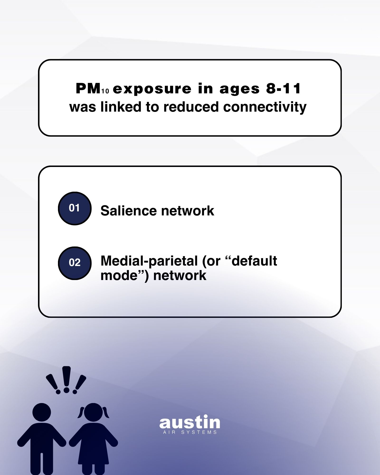 Children exposed to higher levels of air pollution – particularly fine particulate matter (PM2.5) and coarse particulate matter (PM10) – showed altered connectivity between key brain regions.